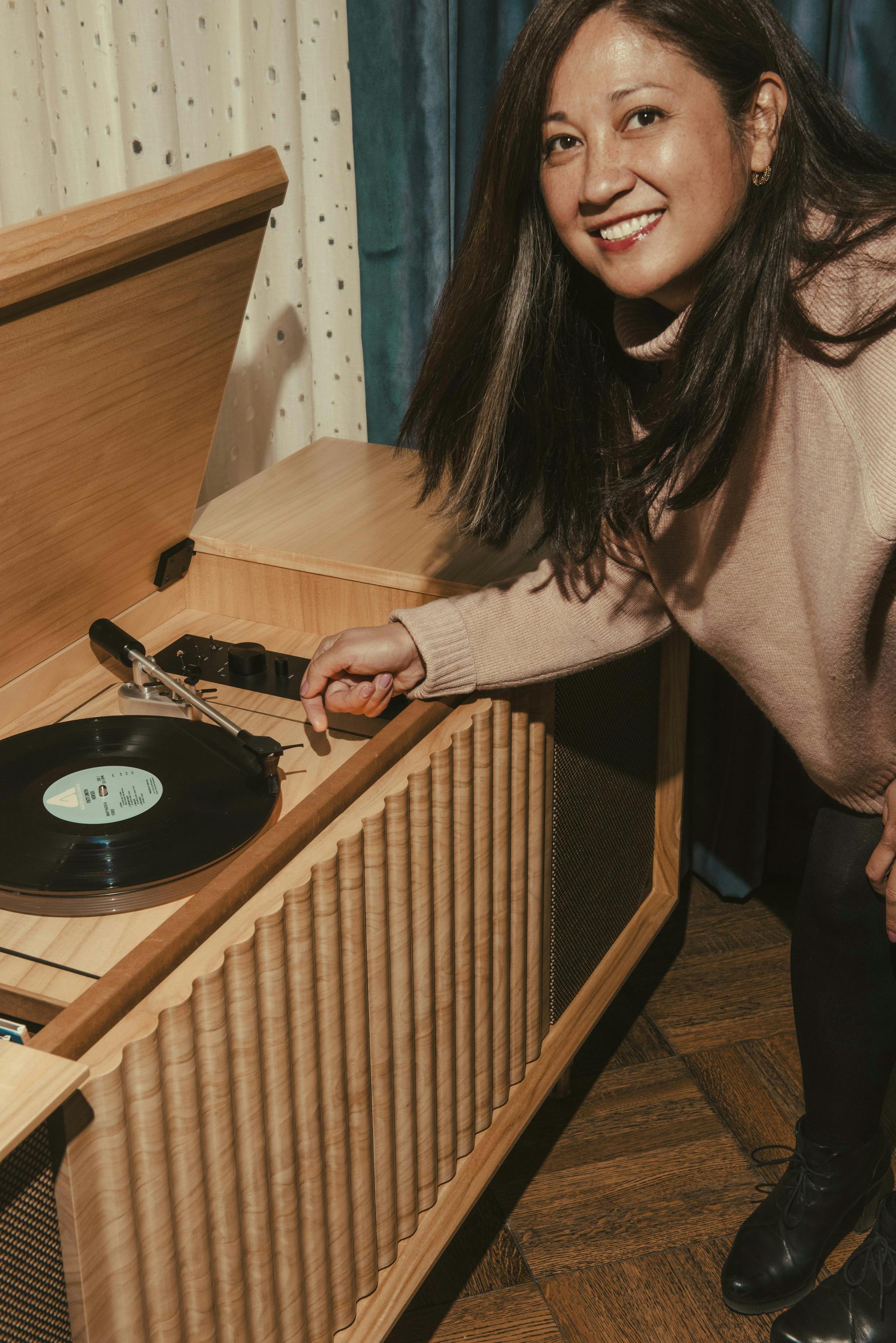 For this week's post we're excited to expand into design. After all, for some that's how we found our way into this wonderfully creative vinyl industry. Design is also less discussed but so important in how we consume our records. From how they were first marketed to home owners as furniture pieces, to design innovation with Braun to the pieces we are able to share about in this feature today. Meet Debra Salyer the Co-founder and Chief Design Officer of Wrensilva. Debra leads design for all of their consoles alongside the rest of a team of skilled artisans and sound engineers.